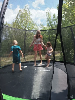 Jag är positivt överraskad av hur väl trampolinen är tillverkad. Den är stabil, robust och lätt att montera. På grund av de skyddade fjädrarna och det faktum att de och stolparna är utanför nätet, känns det säkrare än andra modeller. Rekommenderas varmt!