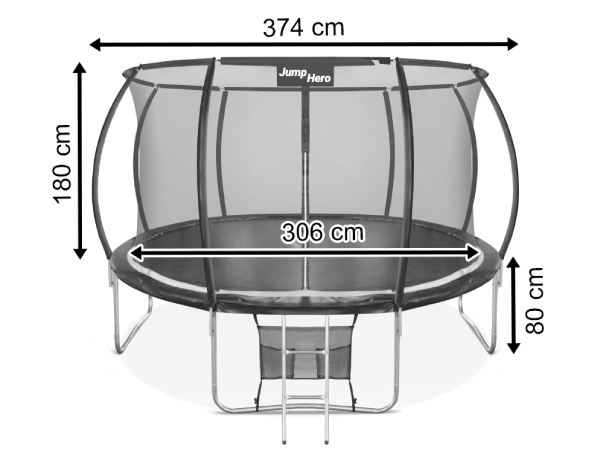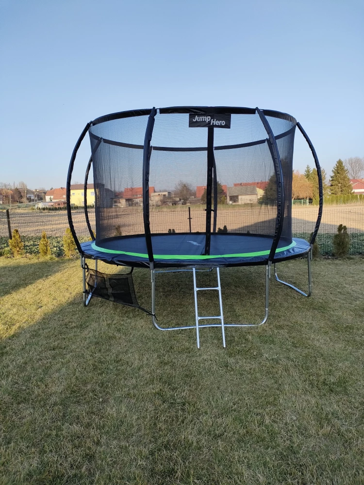 Jump Hero trädgårdstrampolin är en hållbar och stabil och, viktigast av allt, säker trampolin för trädgården eller terrassen. Modern design med många lösningar för att öka säkerheten och komforten.