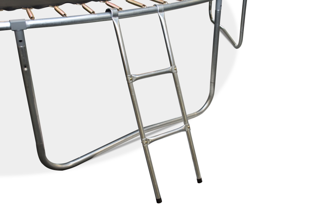 - Studsmattans struktur och stege är tillverkade av slitstarkt korrosionsbeständigt galvaniserat stål.