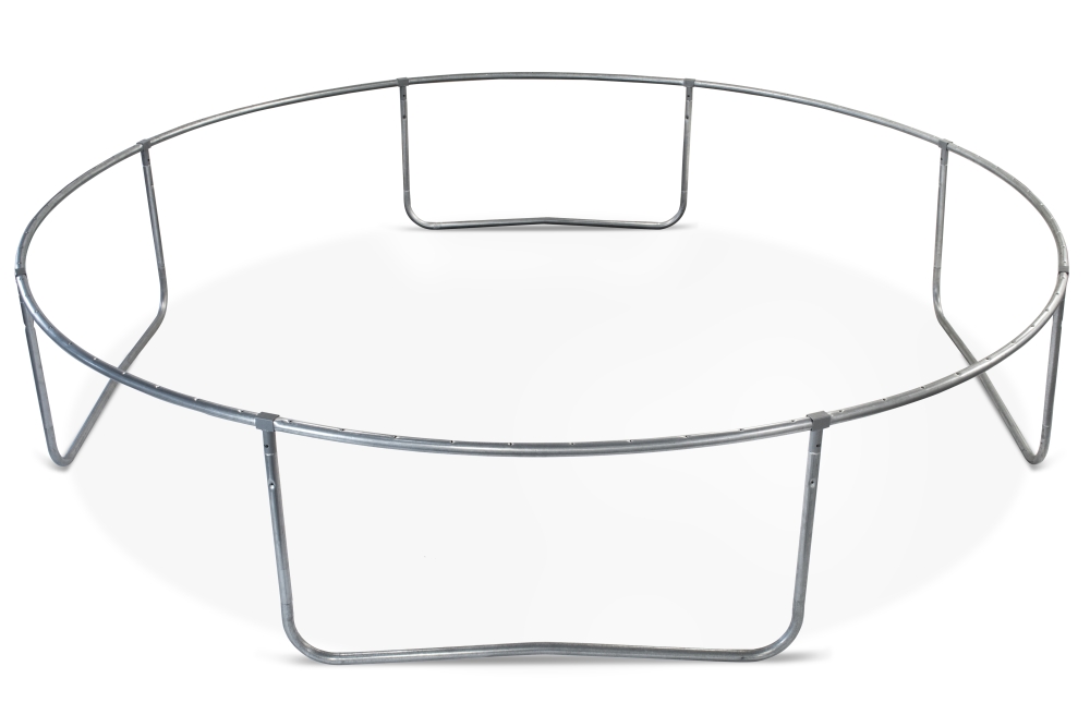 - ram av glasfiber på toppen av studsmattan säkerställer strukturell styvhet