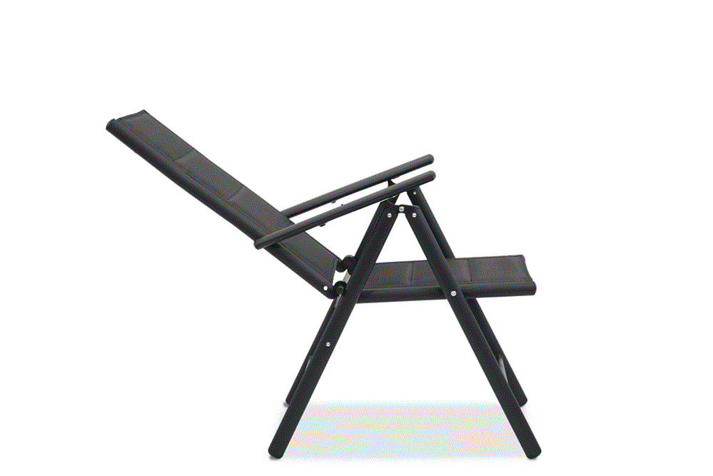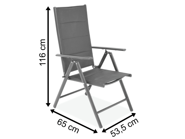 - Ryggstöd och sits i syntetiskt tyg Textilene.